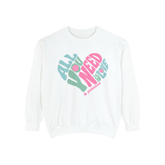 All you need is love & pickleball crew -Unisex Garment-Dyed