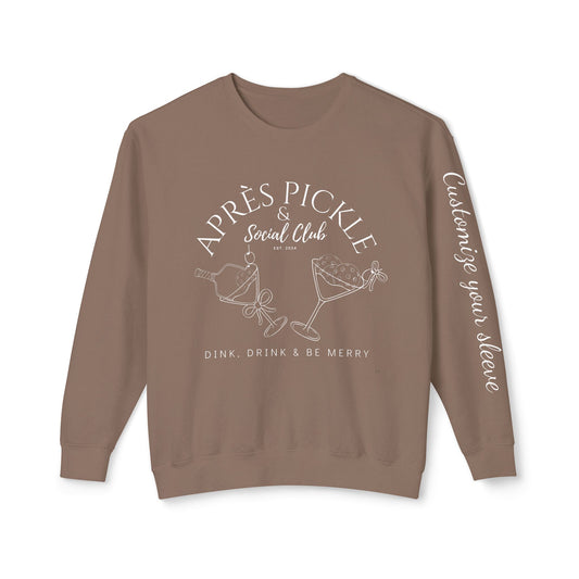 APRES Pickle & Ski - Garment Dyed light weight Lightweight Crew- customize sleeve, add in instructions on order