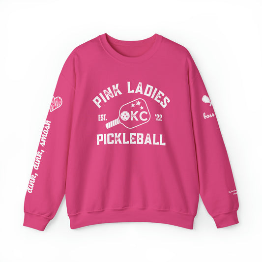Pink Ladies OKC Pickleball Crew - Hot Pink Unisex Crewneck Sweatshirt (customize name on sleeve)