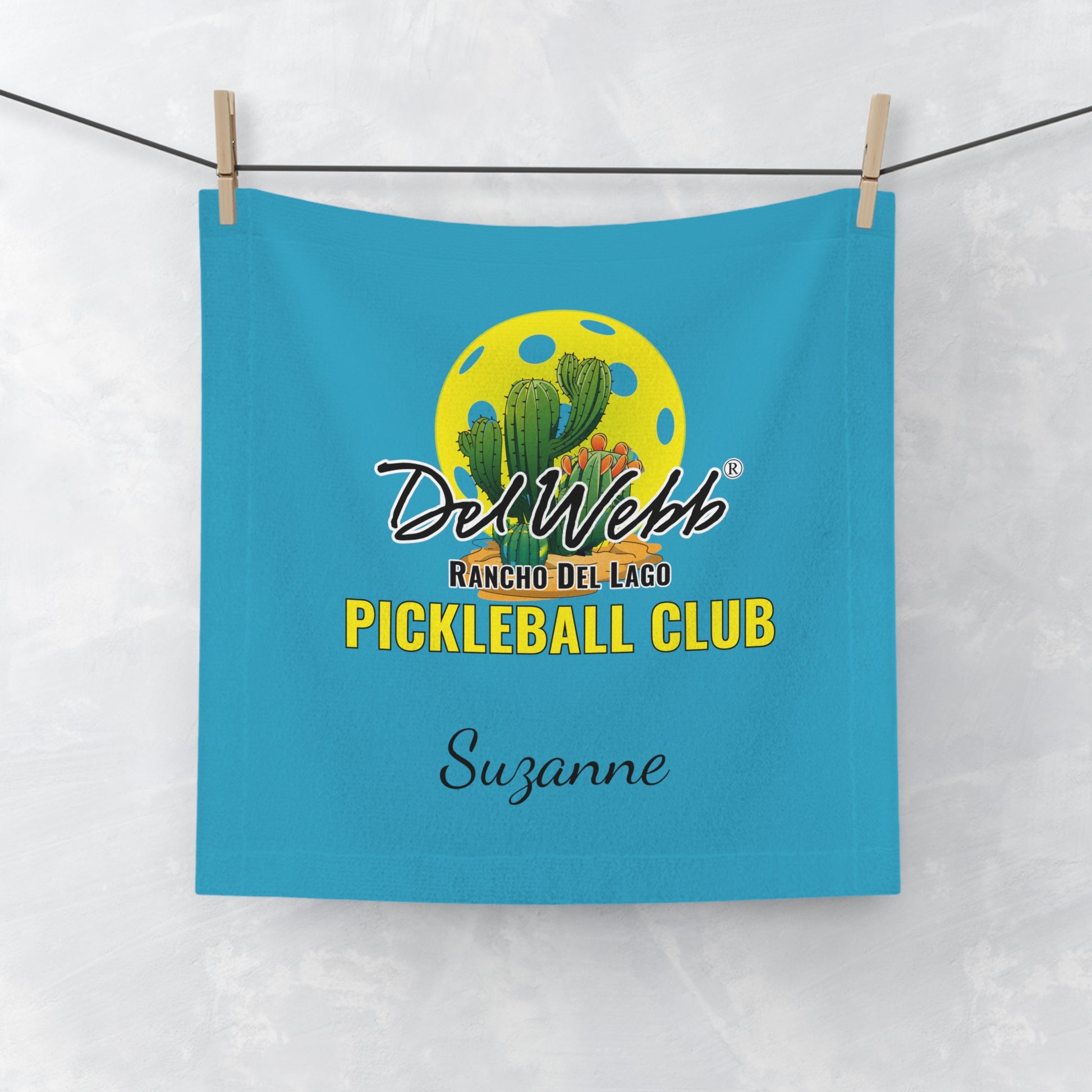 Del Webb Pickleball Face Towel. Customize name